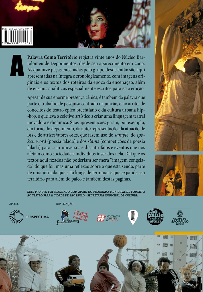 Apesar de sua enorme presença cênica, é também da palavra que parte esse trabalho de pesquisa centrado na junção, e no atrito, de conceitos do teatro épico brechtiano e da cultura urbana hip-hop, o que leva o coletivo artístico a criar uma linguagem teatral inovadora e dinâmica. Suas apresentações giram, por exemplo, em torno do depoimento, da autorrepresentação, da atuação de DJs e de atrizes/atores MCs, que fazem uso do sample, do spoken word (poesia falada) e dos slams (competições de poesia falada) para criar universos e discutir fatos e eventos que nos afetam como sociedade e indivíduos nela. Daí que os textos aqui fixados não poderiam ser mera “imagem congelada” do que foi, mas uma reflexão sobre o que está sendo, parte de uma jornada que está longe de terminar e que expande seu território para além do palco e também destas páginas.