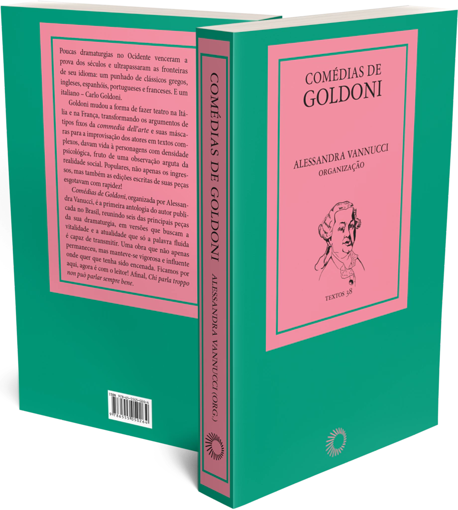 Textos clássicos definem-se pela sua capacidade de atravessar os séculos sem perder a atualidade e a vitalidade, capazes de serem adaptados, redimensionados e reestudados sob novas e inesperadas perspectivas, nunca imaginadas sequer pelos seus autores. Goldoni é um dramaturgo – o primeiro italiano a viver efetivamente deste trabalho – cuja extensa obra, em grande parte, se encaixa à perfeição nesse perfil. Embora o nome soe familiar, o público brasileiro conhece pouco ou nada da obra deste grande reformador do teatro italiano de sua época, que levou aos palcos personagens com profundidade psicológica, contextos político e social apurados, além do pioneirismo em oferecer grandes papéis a mulheres. Pois quase nenhum de seus textos foram publicados aqui. Neste livro, Alessandra Vannucci, encenadora e pesquisadora, selecionou seis obras-primas das comédias do autor – O Teatro Cômico, Café, O Mentiroso, A Dona da Pousada, Bafafá e O Leque – para compor a primeira antologia do veneziano em nosso país, com as peças.