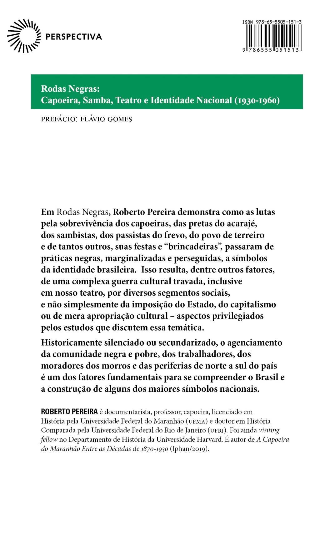 Em Rodas Negras, Roberto Pereira demonstra como as lutas pela sobrevivênvia dos capoeiras, das pretas do acarajé, dos sambistas, dos passistas do frevo, do povo do terreiro e de tantos outros, suas festas e "brincadeiras", passaram de práticas negras, marginalizadas e perseguidas, a símbolos da identidade brasileira. Isso resulta, dentre outros fatores, de uma complexa guerra cultural travada, inclusive em nosso teatro, por diversos segmentos sociais, e não simplesmente da imposição do Estado, do capitalismo ou de mera apropriação cultural - aspectos privilegiados pelos estudos que discutem essa temática. Historicamente silenciado ou secundarizado, o agenciamento da comunidade negra e pobre, dos trabalhadores, dos moradores dos morros e das periferias de norte a sul do país é um dos fatores fundamentais para se compreender o Brasil e a construção de alguns dos maiores símbolos nacionais.